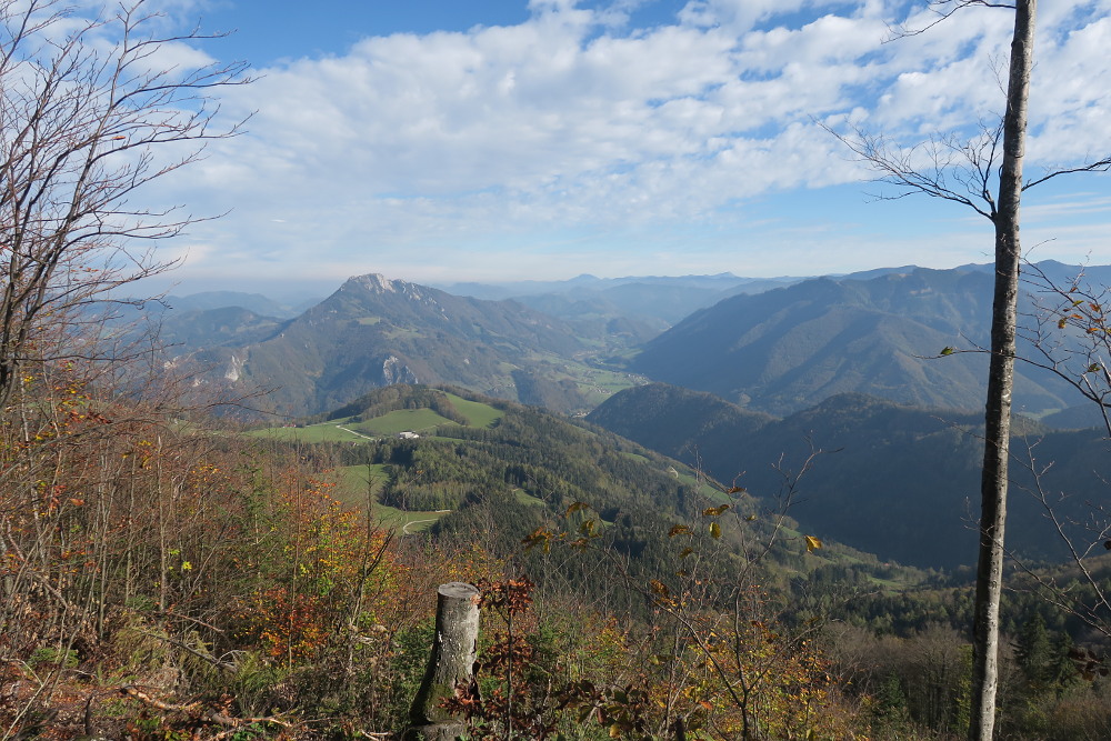 Links der Rohrbachgraben und Schieferstein, gegenüber Brunntalmauer und Fahrenberg, rechts der lange Kamm von Almkogel.