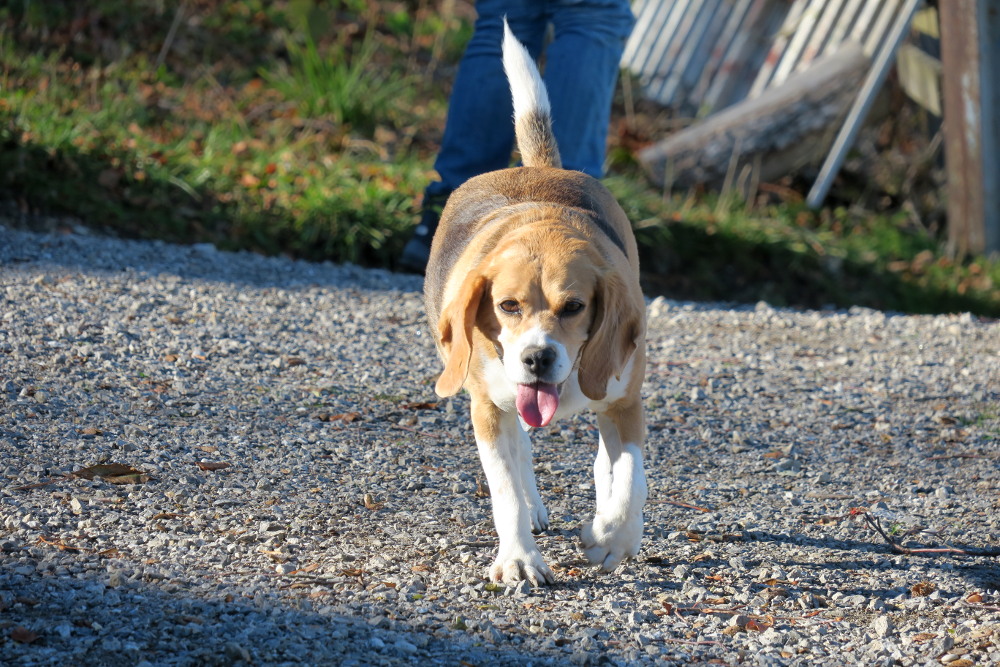 Bild 37: Der Hüttenhund japste den Fahrweg hinauf.