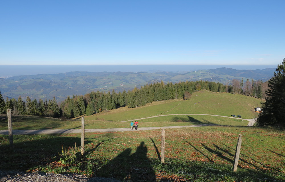 Auf der Kalblsaualm sehen wir unerwartet eine weitere Wanderin, die den Schneeberg ansteuert. Sie geht allerdings mit Abstand an uns vorbei, offenbar nicht an einem kurzen Plausch interessiert.