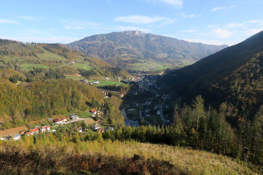 Bild 40: Blick auf das Ennstalknie bei Trattenbach, weiter stromabwärts Ternberg.