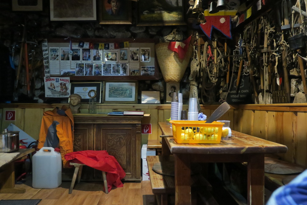 Wir vertrieben uns die Zeit in der Gaststube, während im Fernsehen eine Reportage über die Hohe Tatra, die Bären und Luchse sowie über die Sherpas gezeigt wurde und welche irrwitzigen Gewichte sie am Rücken über mehr als 30 Grad steile Hänge hinauftragen.