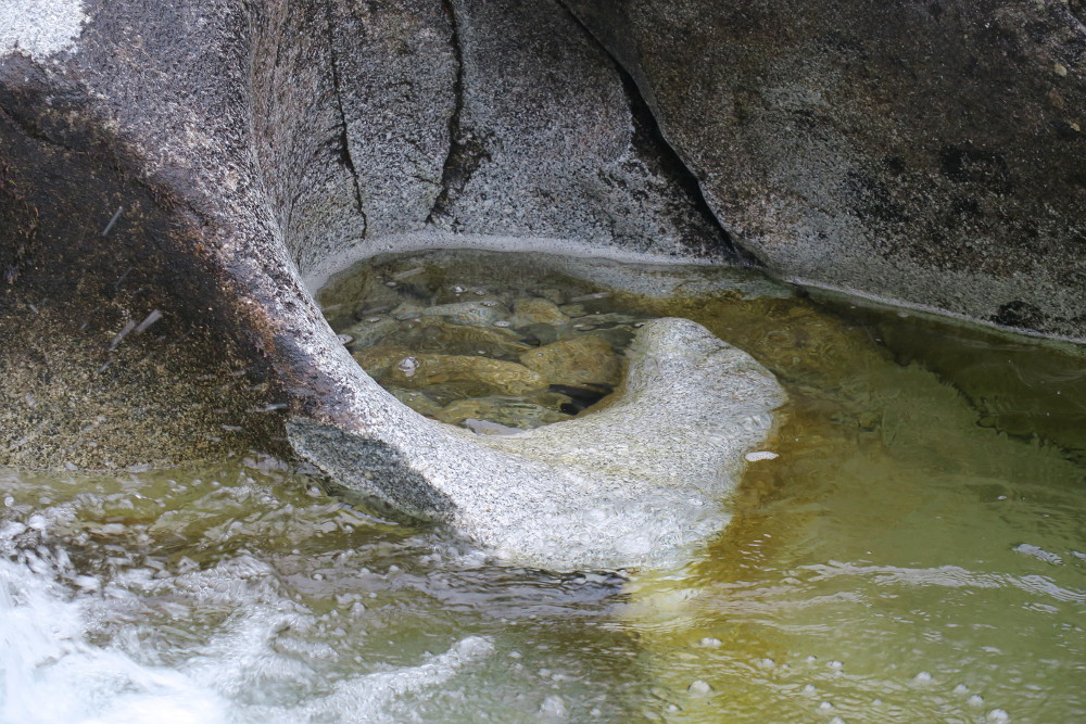 Von der Fallhöhe unspektakulär, aber beeindruckender fand ich das ausgeschliffene Gestein und vor allem das glasklare Wasser.