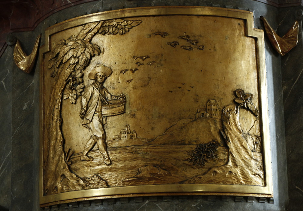 Bild 37: Kanzel aus dem Jahr 1794 mit dem Gleichnis vom vierfachen Ackerfeld (Sämann).