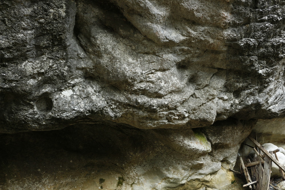 Bild 41: Alte Widerlager für Baumstämme, die quer zur Schlucht die Brücke trugen.