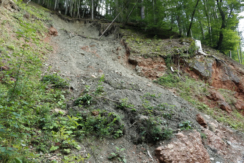 Bild 50: Erdrutsch, daneben schaut Gosaukonglomeratgestein heraus.