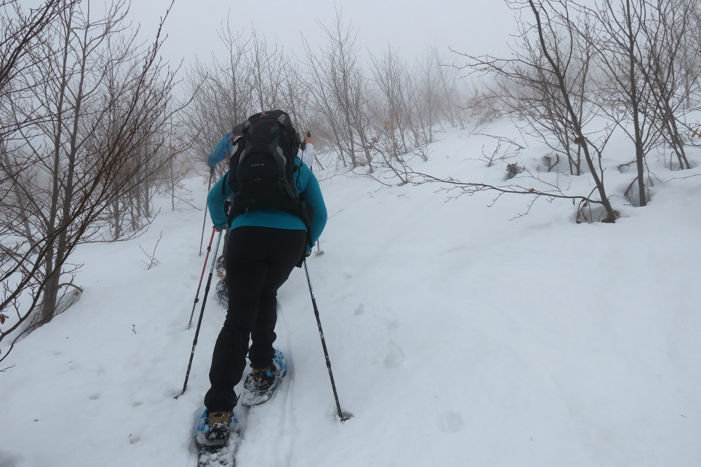 Kurz vor dem letzten Rastpunkt spürte man beim Gehen bzw. mit den Stecken deutlich eine Art Eisplatte unter der Schneedecke, die wie hohl klang.