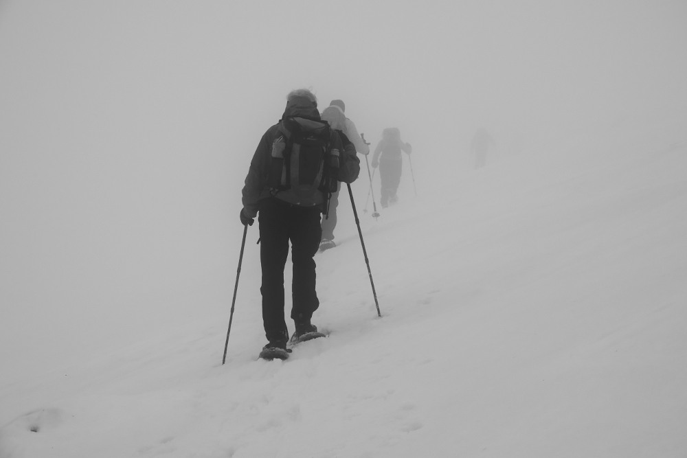 Bild 15: Rast bei beginnendem Schneefall unterhalb des Gipfels.