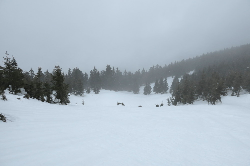 Hier stiegen wir später nach kurzem Gegenanstieg von der anderen Seiten her wieder ab. Fast zeitgleich begann es einzunebeln, die Kaltfront näherte sich.