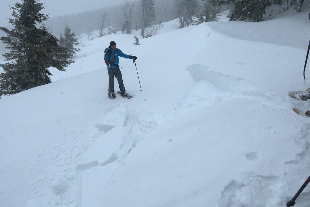 Bild 20: Wie schlecht die Schneeschichten miteinander verbunden sind, zeigt dieser künstlich herbeigeführte Wechtenbruch.
