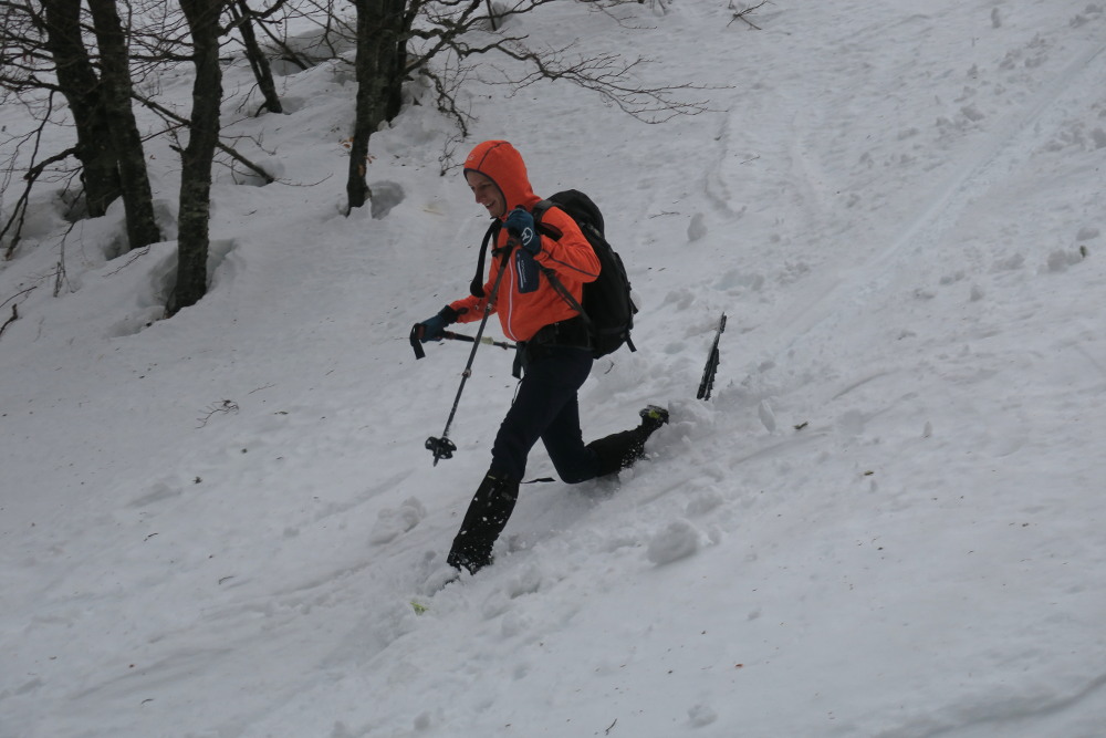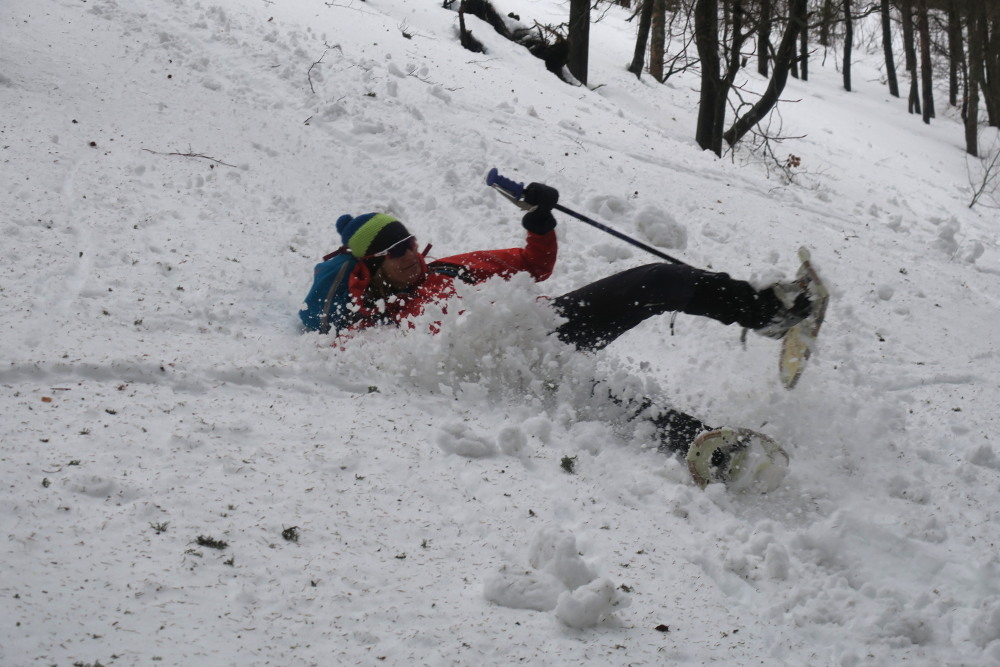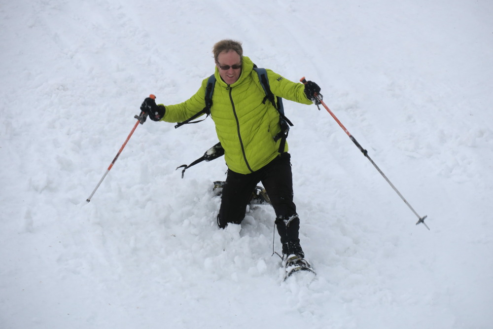 Der Schnee erwies sich leider als zu griffig, es war eher ein Stapfen denn ein Rutschen.