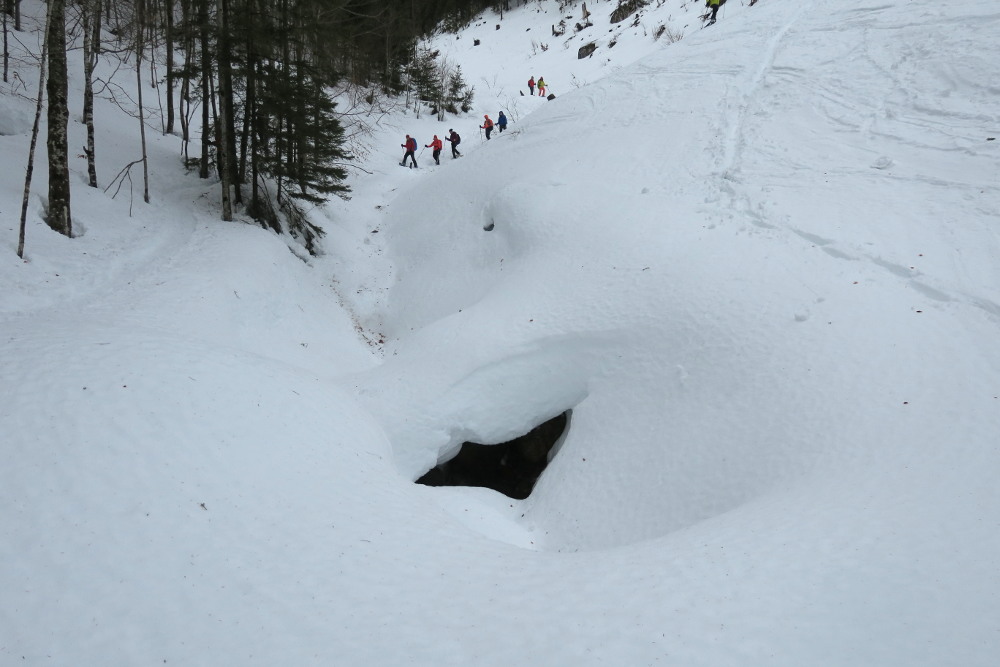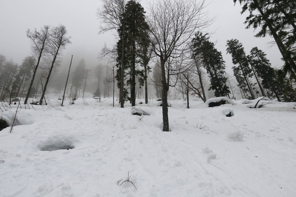 Zahlreiche kleinere Rutschungen sind erkennbar, nach Neuschnee eher nicht empfehlenswert zu begehen.