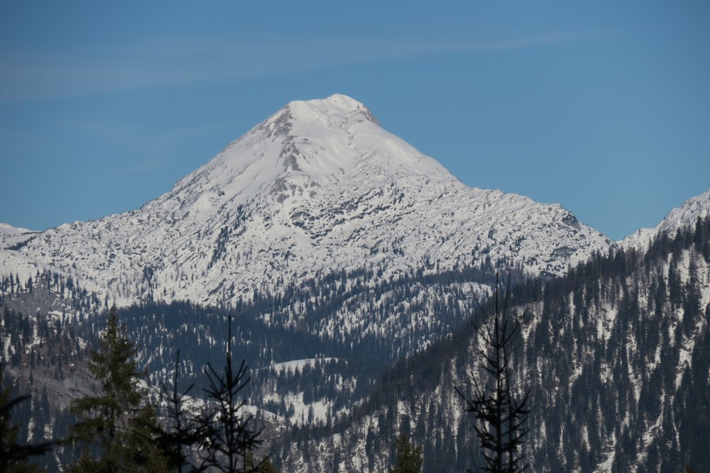 Derzeit befinde ich mich in Bad Mitterndorf auf meiner ersten Kur, Folge des Knochenmarködems im Vorjahr und einiger ausgefallener Urlaube, sodass ich jetzt vor allem die Auszeit genieße. Sonntag ist immer therapiefrei, da kann man machen, was man will. Logisch, dass ich das schöne Wetter nutzen wollte. Dem Skizirkus wollte ich nach Möglichkeit entgehen, daher war die Tauplitz keine Option. Aber es gibt ja noch Paulis Tourenbuch und Pauli hat einige der selbst den Einheimischen unbekannten Gipfel in den letzten Jahren abgegrast und Berichte darüber verfasst. Dieser diente mir als Inspiration für diese Tour. Ich benötigte für 13,46km und 550hm 4 Stunden und 12 Minuten, bei insgesamt fünfzehn Minuten Pause höchstens. Schuld war der Umstand, dass ich erst nach dem Mittagessen aufbrach und zum Einbruch der Dunkelheit wieder unten sein wollte. F