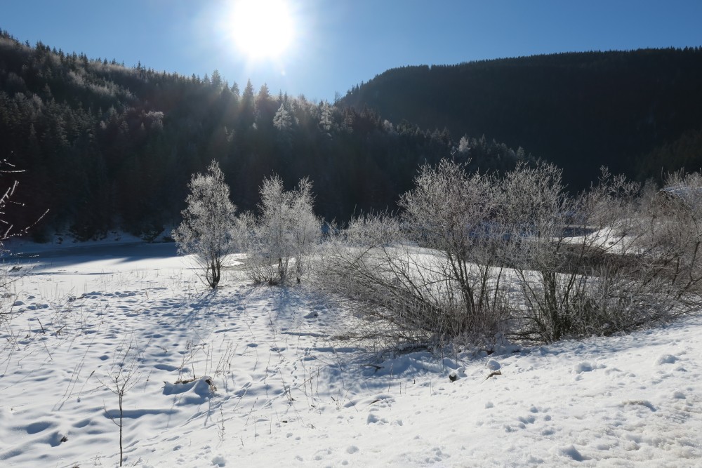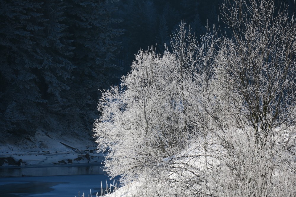 Bild 3: Der nächtliche flache Nebel sorgt bei knapp zweistelligen Minusgraden für herrliche Reiflandschaften.