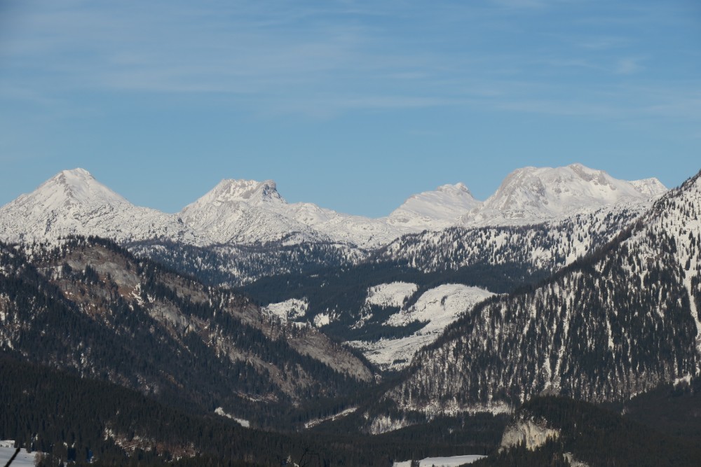 Bild 9: Links Hochtausing, ganz rechts Harting, mittig Natterriegel, Mittagskogel leuchtend weiß, Grabnerstein, Admonter Warte, über dem Harting Pleschberg.