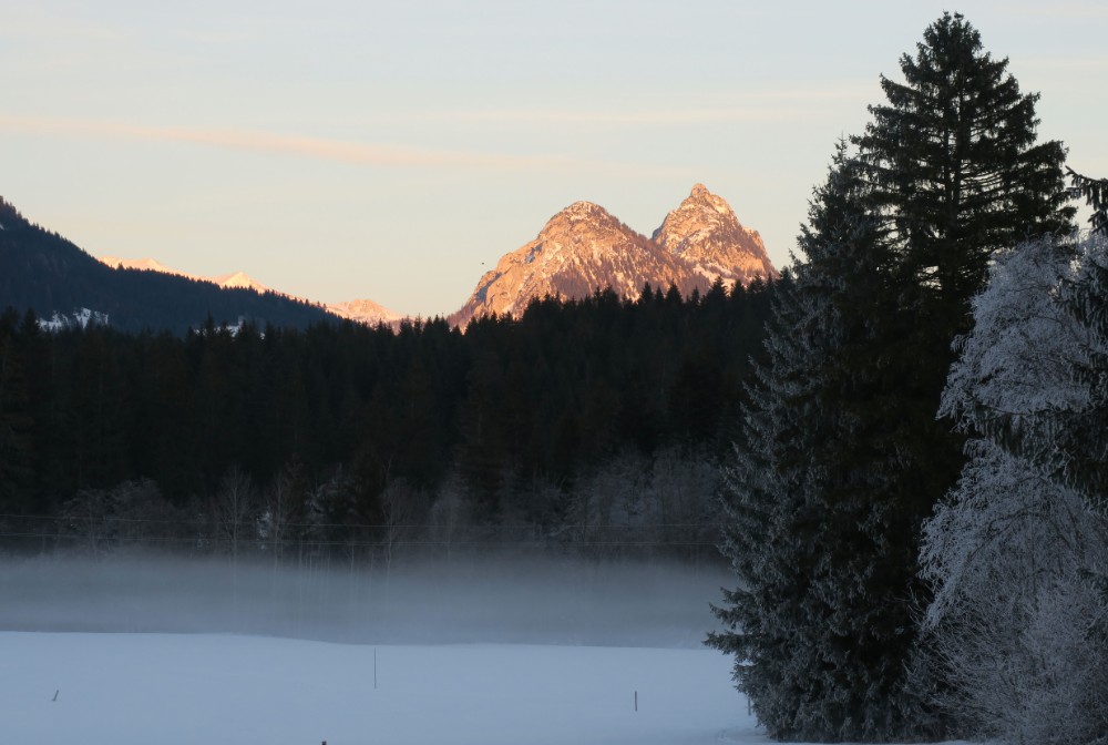 Bild 38: Gwendlingstein und Hechlstein mit seichtem Nebel (MIFG, von mince fog, Abkürzung in der Flugmeteorologie).