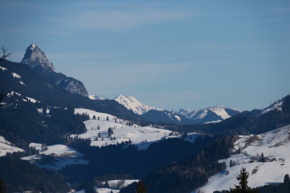 Bild 13: Maximalzoom auf den Kleinen Buchstein (1990m) und Großen Buchstein (2224m) in 55km Entfernung.