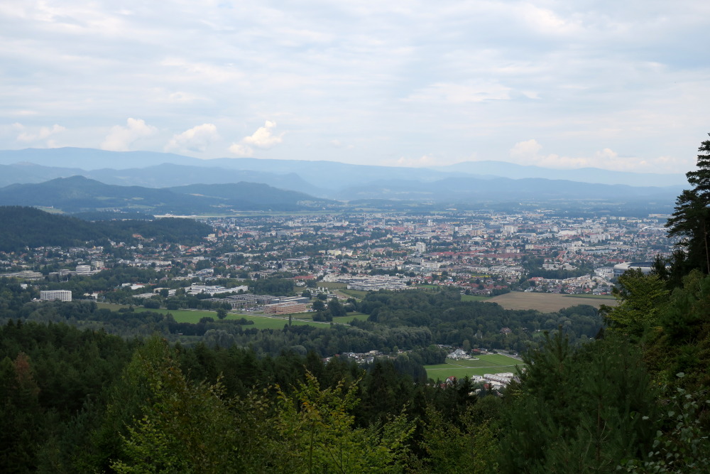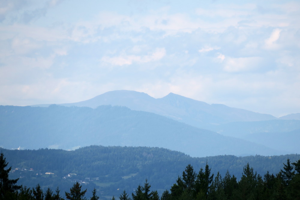 Bild 24: Dafür ist ab dem Schrottbauern (bewirtschaftet) die Sicht frei bis zum Rosental (Drautal). In der Talung liegt Ferlach.