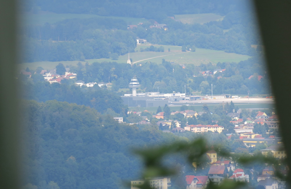 Bild 26: Flughafen Klagenfurt mit Tower, dahinter St. Georgen am Sandhof mit Kirchturm aus dem 12. Jahrhundert.
