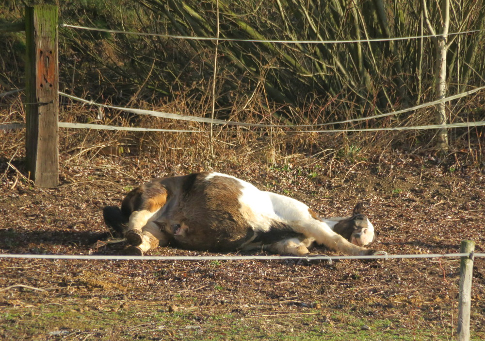 Bild 1: Sonnenseitig wälzten sich die Pferde hingegen im sonnigen Glück.