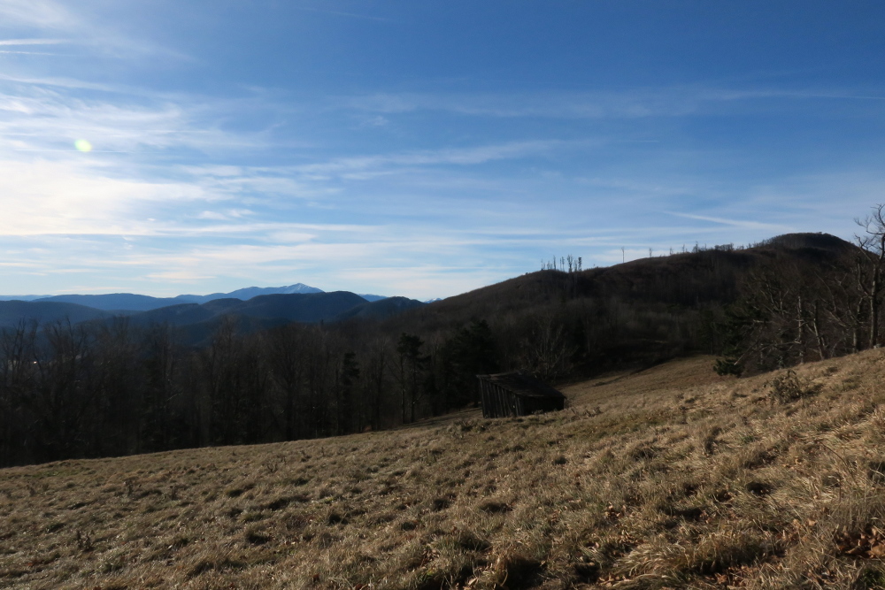 Beim Umrunden des Schutzhauses stellten wir erstaunt fest, dass es bewirtschaftet war. Die durchaus skurrile Vergangenheit der letzten Monate hatte das nicht erwarten lassen. Seit Anfang Oktober hätte der jetzige Pächter die Hütte schon räumen müssen, er hat sich aber häuslich eingerichtet und bietet weiterhin die wichtigsten Getränke und warme und kalte Speisen an. Preisliste gab es keine.