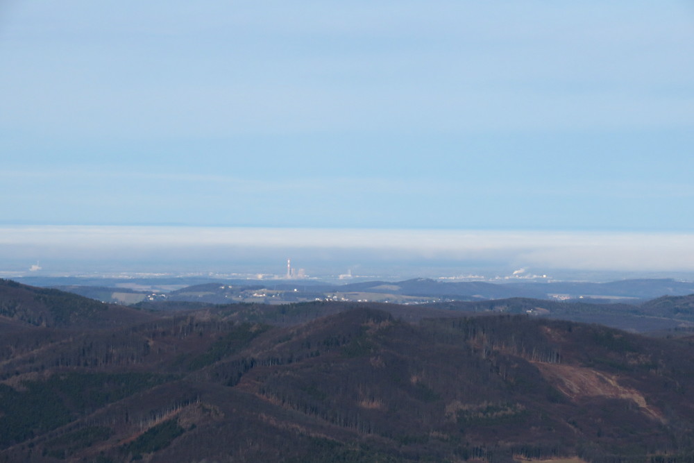 Bild 25: In der Bildmitte die Wasserdampfwolken des Kernkraftwerks Dukovany in 122km Entfernung.