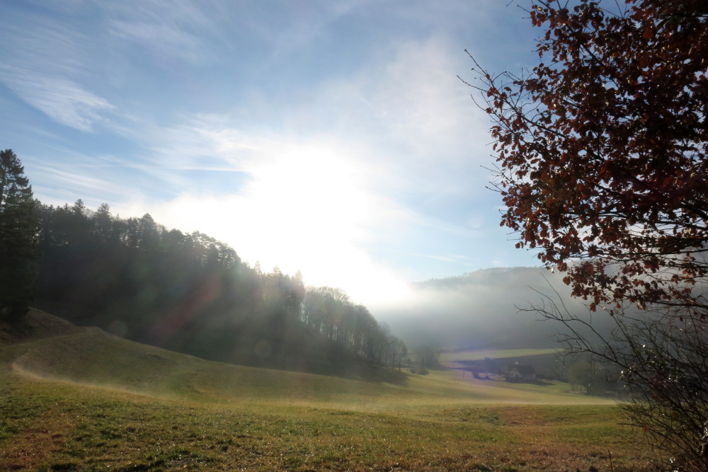 Bild 2: Blick zum Gehöft Sulzbach mit aufsteigenden Nebelschwaden.