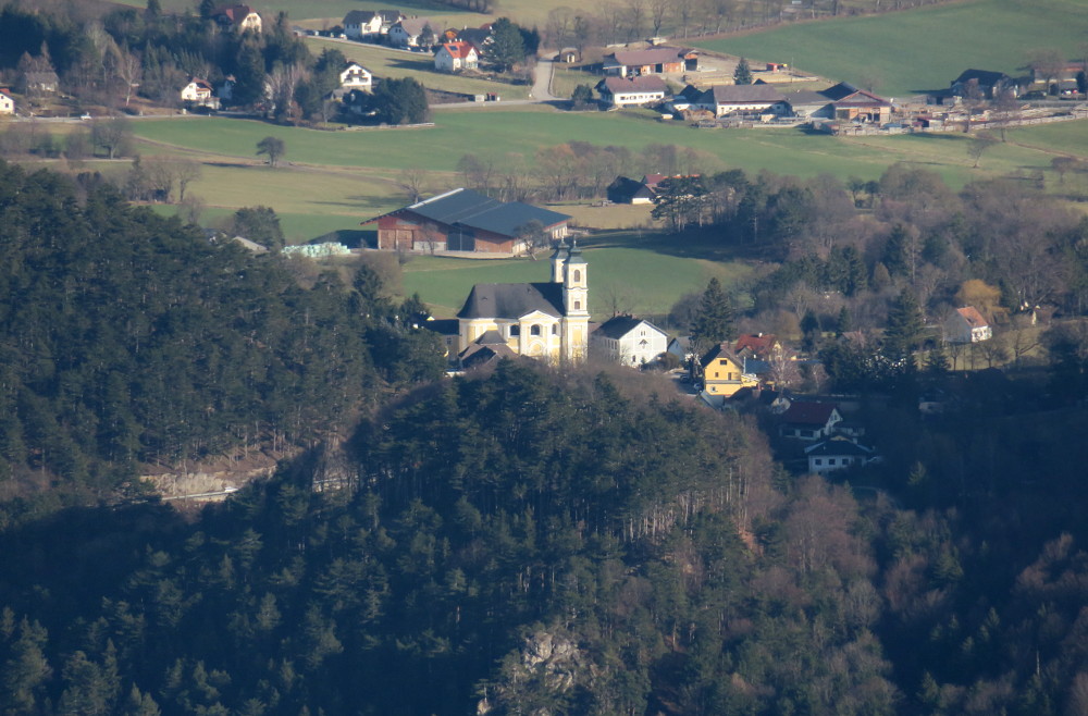 Bild 22: Wallfahrtskirche am Hafnerberg mit Festenberg davor, auf dem sich Reste einer Burgruine befinden (1157 urkundlich erwähnt).