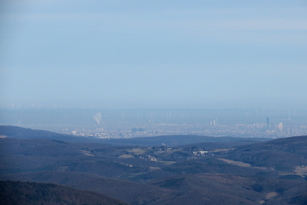 Bild 23: Etwas dunstiger Blick nach Wien, dahinter das Weinviertel.