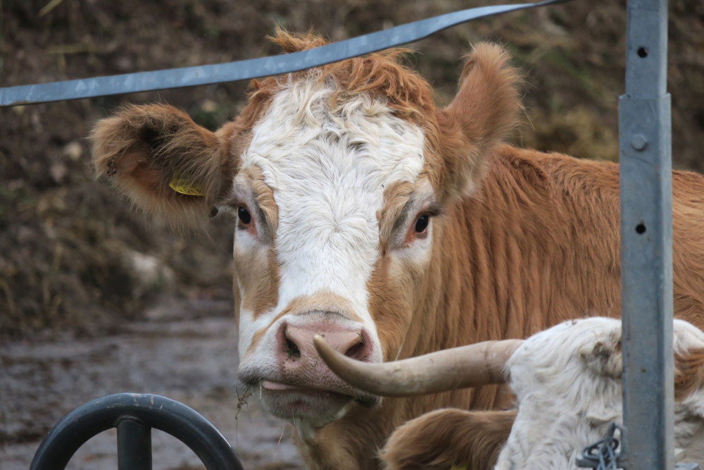 Für den Abstieg nahmen wir den eher seltenen begangenen, aber gut markierten Weg nach Eberbach, der südostseitig relativ schattig verläuft. Bei einem Gehöft sah ich einen großen Hund auf uns zusprinten, der zum Glück durch einen hohen Zaun von uns getrennt war. Der flippte völlig aus, als wir vorbeigingen und bellte uns ununterbrochen und in einem unangenehm hohen Ton an. Er konnte sich gar nicht beruhigen und hörte erst auf, als wir vorbei waren.