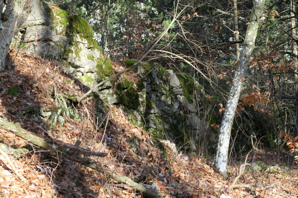 Anfangs kommt man bei einer Geländevertiefung vorbei, die an einen alten aufgelassenen Steinbruch erinnert.