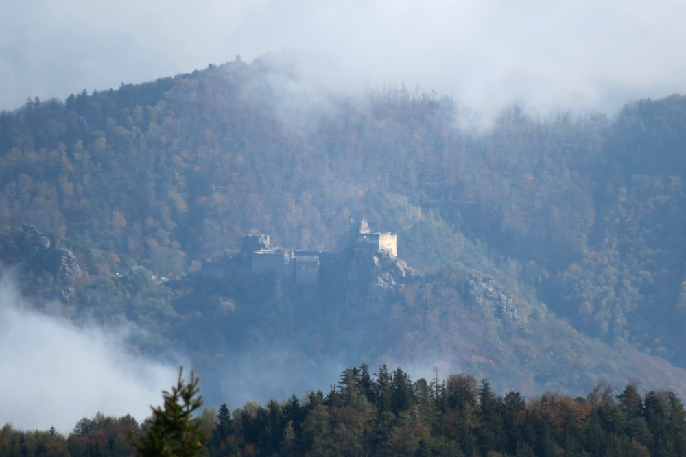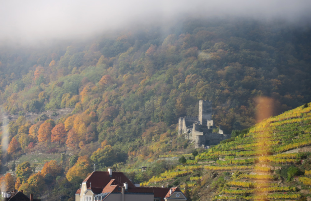 Bild 1: Die Ruine Hinterburg bei Spitz an der Donau, mit leuchtendem Tausendeimerberg.
