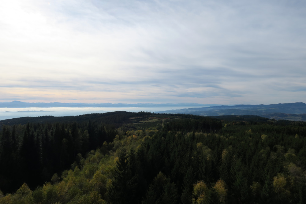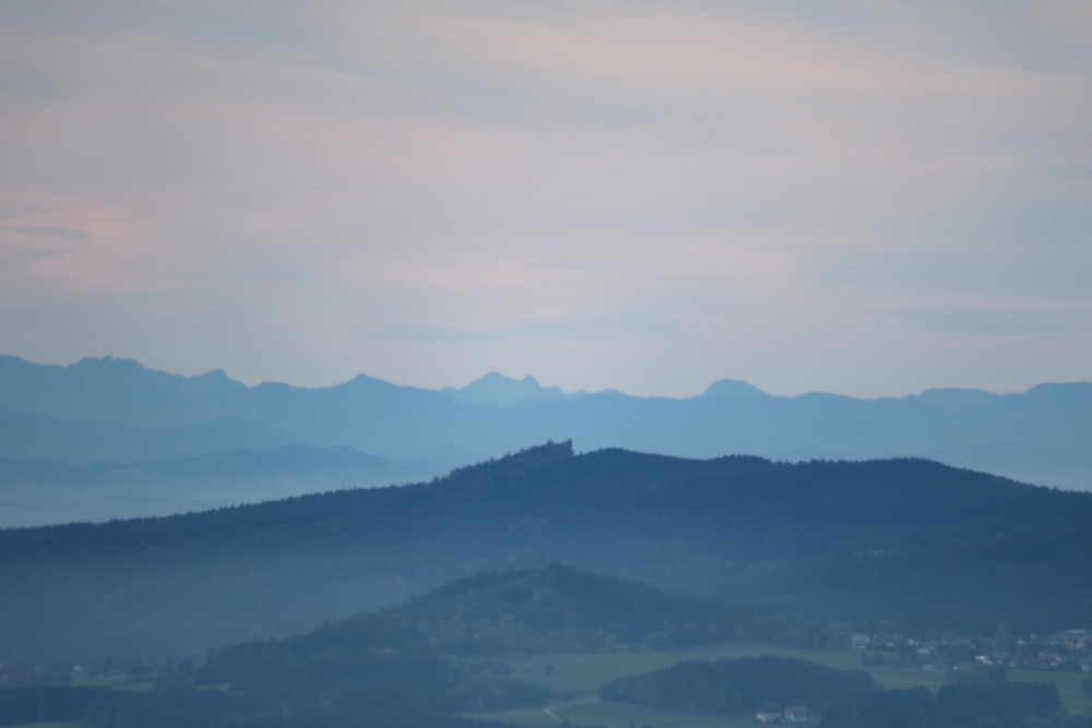 Bild 10: Erste ungetrübte Alpensicht vom Gießhübler Kreuz.