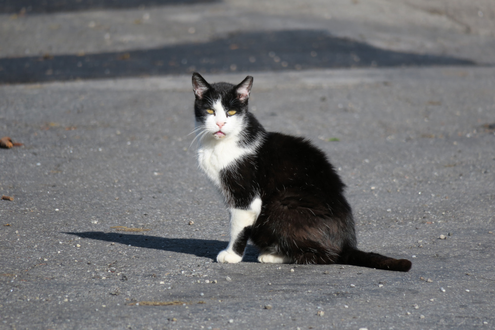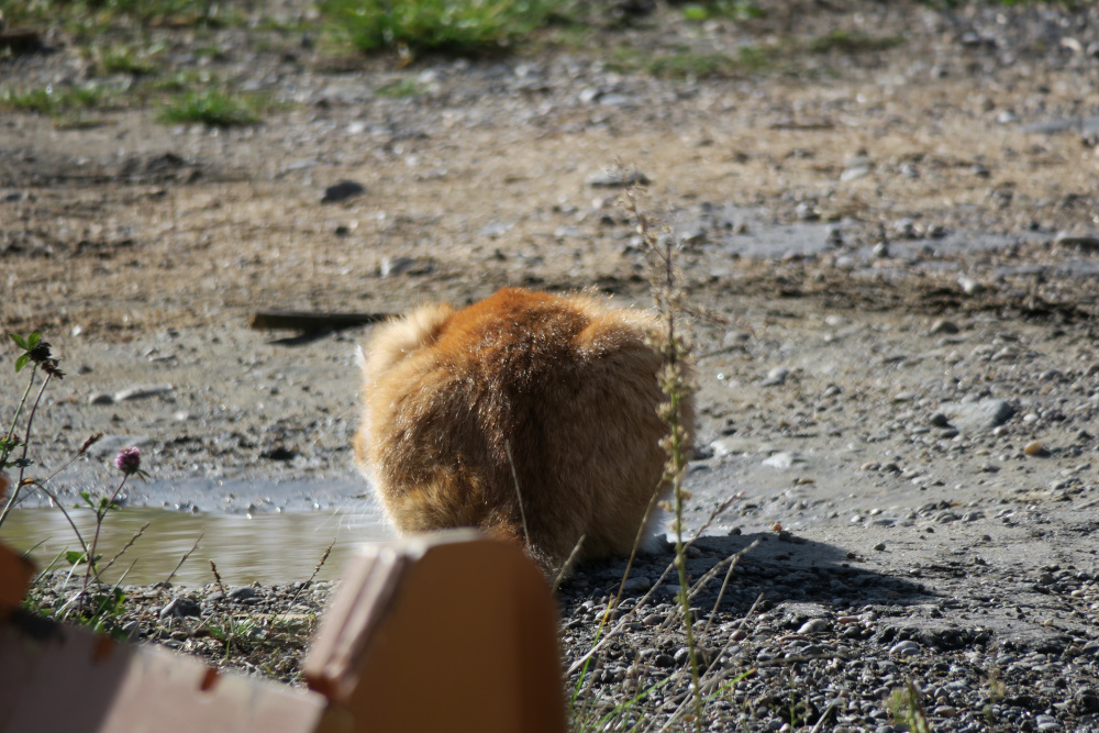 Die Katze bemerkte mich erst, als ich an ihr vorbei war, ließ sich aber nicht beim Trinken stören.