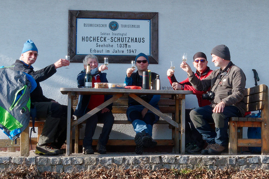 Auf fünf geschrumpfte Silvesterwanderung, aber trotzdem schön. In Wien gab es teilweise Nebel und je nach Grätzel bis zu fünf Zentimeter Industrieschnee. In anderen Bezirken dichter gefrierender Nebel und tolle Reiflandschaft. Nur die Innere Stadt und der Norden blieben unterm Nebel, nicht darin. In Alland dann wolkenfrei und teilweise strenger Frost, ebenso im schattigen Graben von Eberbach.