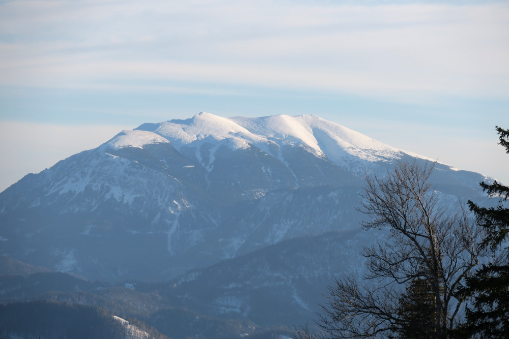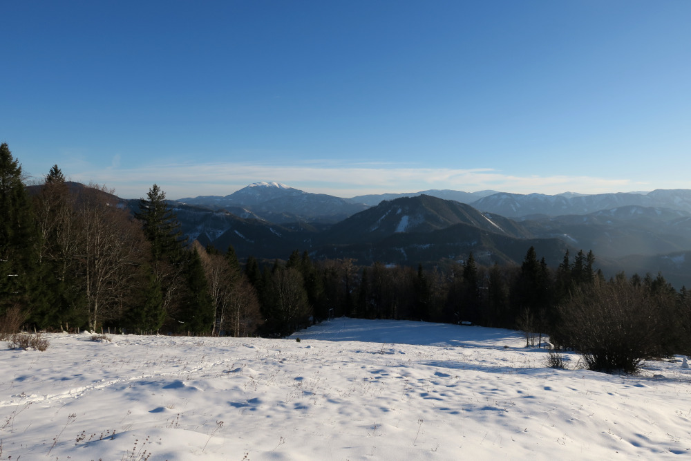 Bild 7: Hocheck (1037m), hinten Hoher Lindkogel (834m), Sirnitzgupf, Reingupf, Kieneck und Geißruck.