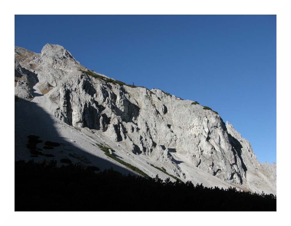 Bild 1: Im oberen Teil der Rodel bewundert man die sonnenbeschienene Felsszenerie des Großen Wildkamms