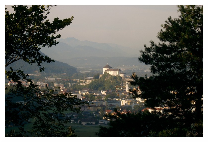 Bild 1 Nach Überwindung der letzten Stufen bietet sich bereits der folgende Anblick auf die Festung Kufstein (1205 erstmals urkundlich erwähnt), im Hintergrund Ausläufer des Pölvenmassivs.