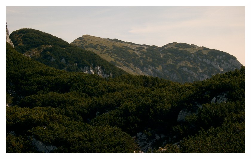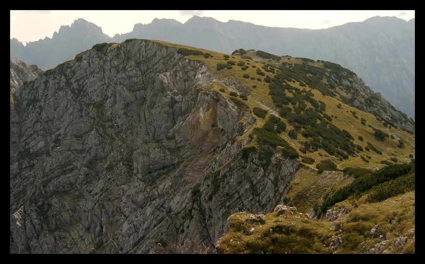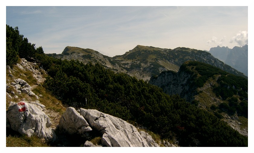 Nach dem Peterköpfl schließt sich eine scheinbar ewig währende Hatscherei durch die Latschenkieferfelder an. Immer wieder geht es auf und ab auf schmalen, aber gut begehbaren Weg, von dem sich stets beeindruckende Fernsichten ergeben.