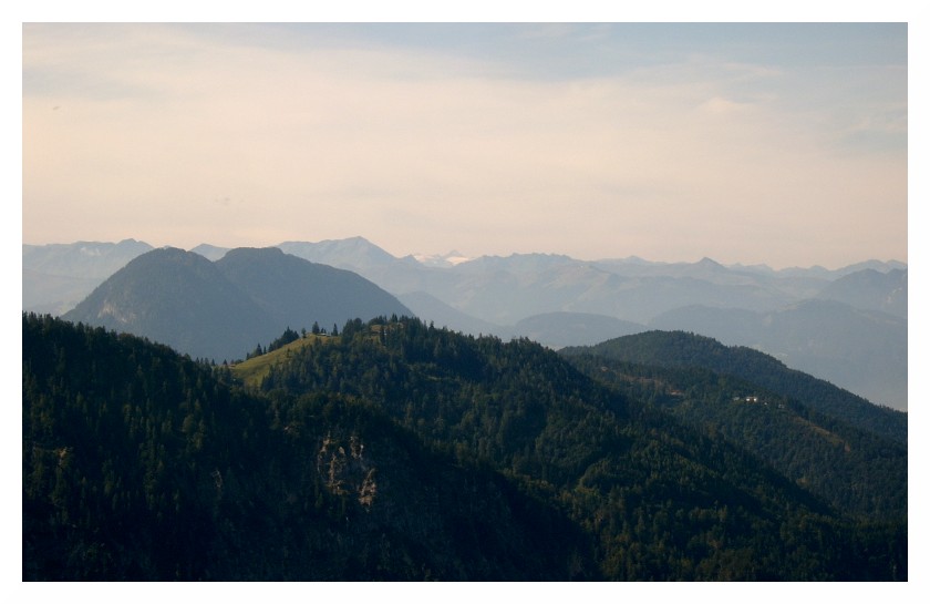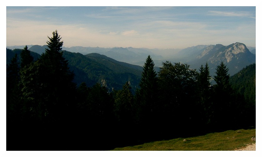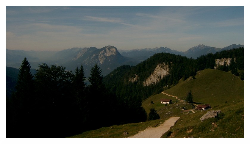 Bild 4 Unten die Ritzaualm, rechts am Pendl vorbei hin zu den Bayrischen Voralpen. Bei den Gipfeln muss ich passen...