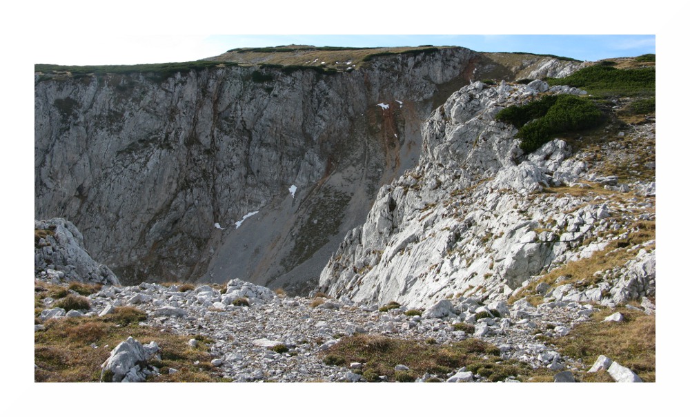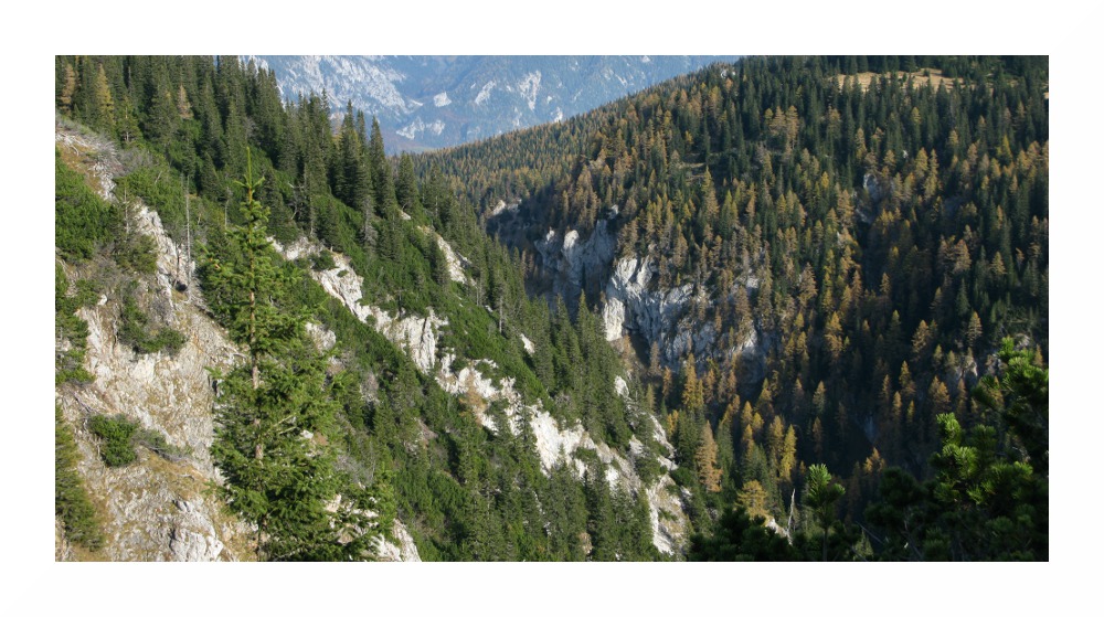 Bild 24: Beim Abstieg zwischen Klobentörl und Dirnbacher Hütte, mittig geht es durch das Gaißloch ins Große Höllental