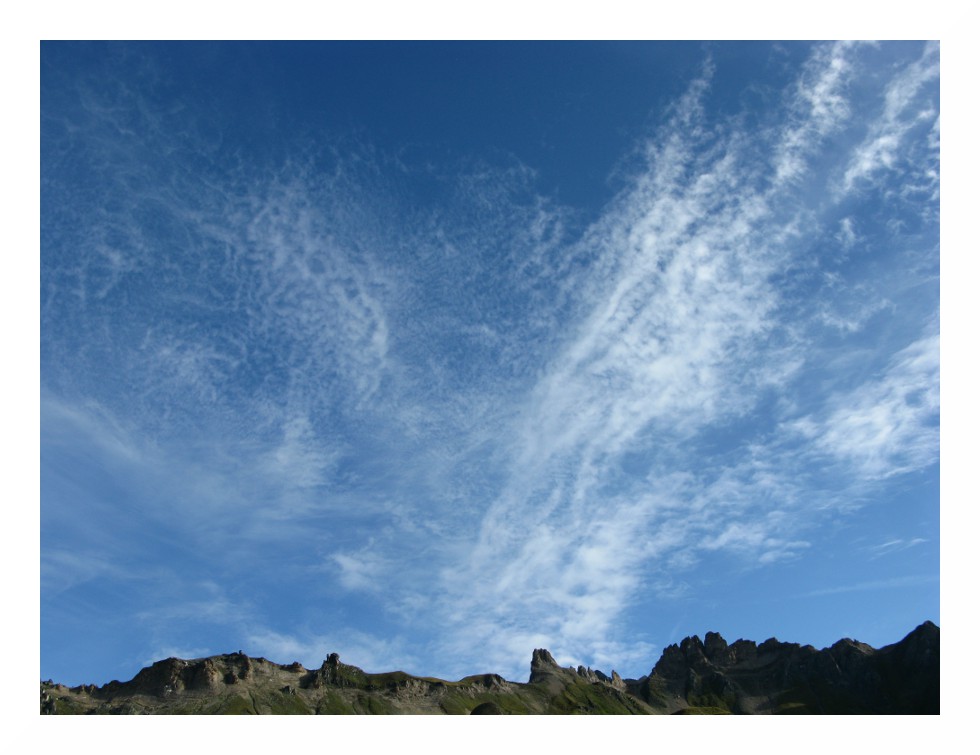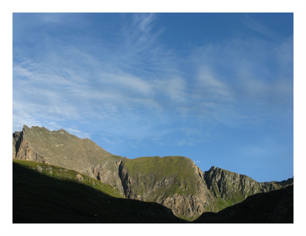 Bild 22: Namenloser Gipfel/Gratkamm links vom Sandjöchl, darüber hoher Altocumulus floccus und undulatus