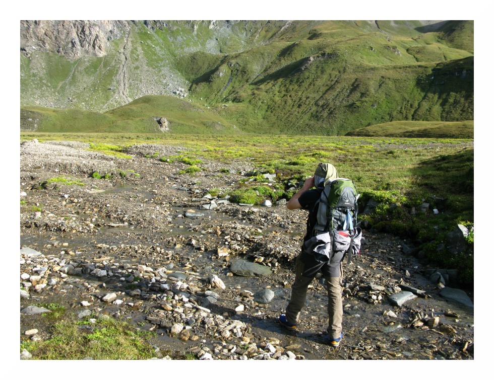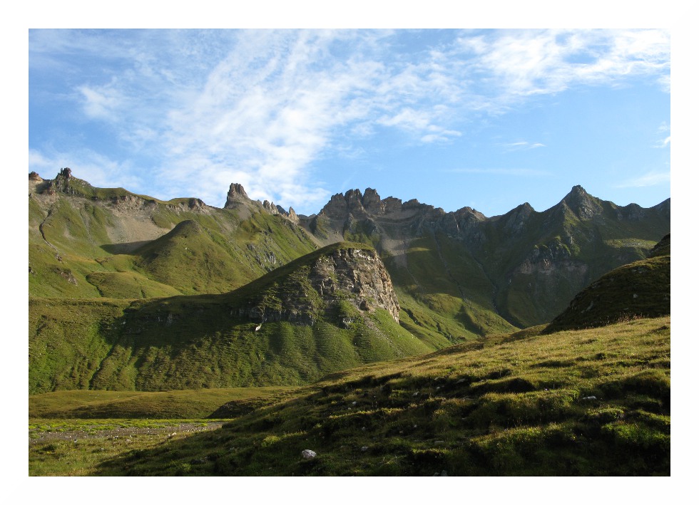 Bild 23: Nachdem man gemächlich auf und ab "in die Pfann" wandert, kommt die erste Steilstufe auf den Boden eines ehemaligen Gletscher(sees).