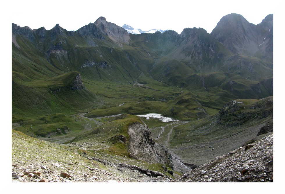 Bild 28: Blick in die "Pfann", im Hintergrund lugt erstmals der Hochfeiler (3510m) heraus