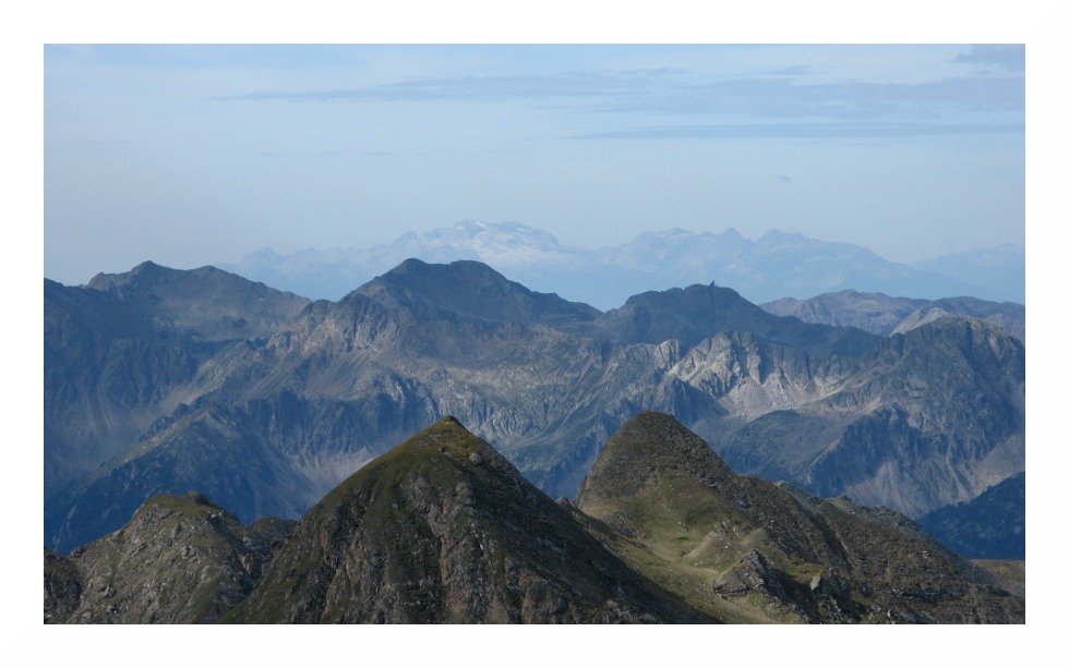 Bild 35 Im Hintergrund der Monte Cevedale (3769m), rechts Königsspitze (3851m), ganz rechts Ortler (3905m), alle in ca. 90 km Entfernung.